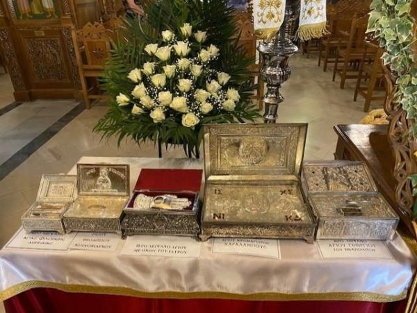 Στο πλαίσιο του εορτασμού, τέθηκαν σε προσκύνηση προς ευλογία και αγιασμό των πιστών τα Ιερά Λείψανα των Μικρασιατών Αγίων που κοσμούν τους Ιερούς Ναούς της Ιεράς Μητροπόλεως, τα οποία και μετέφεραν οι πρόσφυγες πρόγονοί μας από τη γη της Μικρασίας στη νέα πατρίδα.