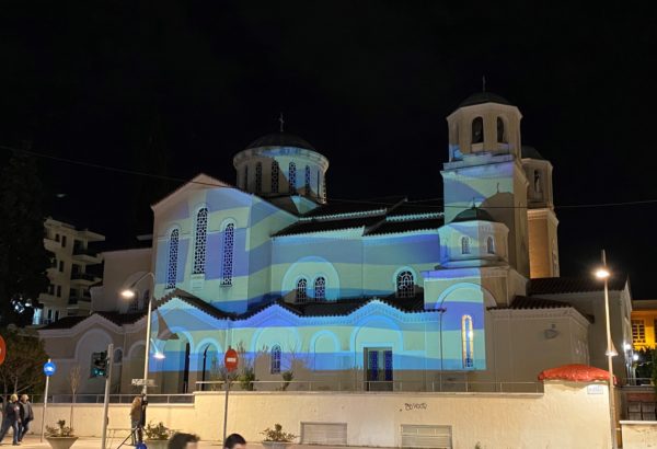 Στα χρώματα της Γαλανόλευκης ο Μητροπολιτικός Ναός στην Καλαμαριά