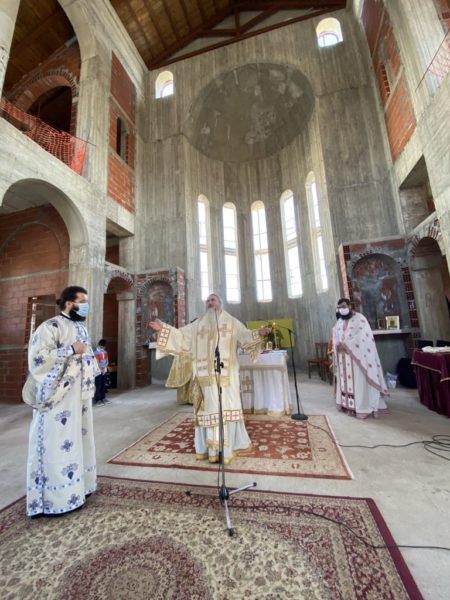 Τα έργα του Ναού έχουν προχωρήσει αρκετά και έτσι το απόγευμα της Δευτέρας της Διακαινησίμου τελέστηκε ο Αρχιερατικός Εσπερινός και το πρωί της Τρίτης της Διακαινησίμου η Αρχιερατική Θεία Λειτουργία χοροστατούντος του Σεβασμιωτάτου Μητροπολίτη κ. Ιουστίνου με την παρουσία του δημάρχου Καλαμαριάς κ. Δαρδαμανέλλη και πλήθος πιστών.
