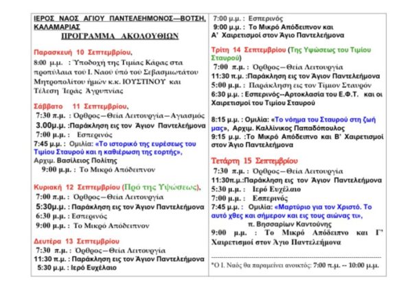 Η Κάρα του Αγίου Ιαματικού Παντελεήμονος θα μεταβεί από την Ιερά Μονή Παναχράντου της Άνδρου και θα παραμείνει στον ναό έως την Δευτέρα 20 Σεπτεμβρίου, όπου και θα τίθεται καθημερινά σε προσκύνηση από τις 7 το πρωί έως τις 10 το βράδυ. Κατά το δεκαήμερο παραμονής της Κάρας του Αγίου στον Ιερό Ναό Αγίου Παντελεήμονος στο Βότση Καλαμαριάς, θα τελεστούν πλήθος ιερών ακολουθιών, ενώ θα πραγματοποιηθούν και ομιλίες με πληθώρα πνευματικών θεμάτων.