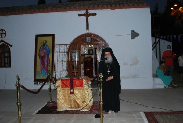 Στο τέλος του Πανηγυρικού Εσπερινού ο Σεβασμιώτατος Μητροπολίτης κ. Συμεών, αφού ευχαρίστησε τον ομιλητή π. Βασίλειο, επισήμανε ότι καλούμαστε να ζούμε με αγιότητα. Επίσης, ευχήθηκε «έτη πολλά» σε όσους φέρουν τα ονόματα των Πρωτοκορυφαίων Αποστόλων, αγίων Πέτρου και Παύλου και έχουν τα ονομαστήριά τους.
