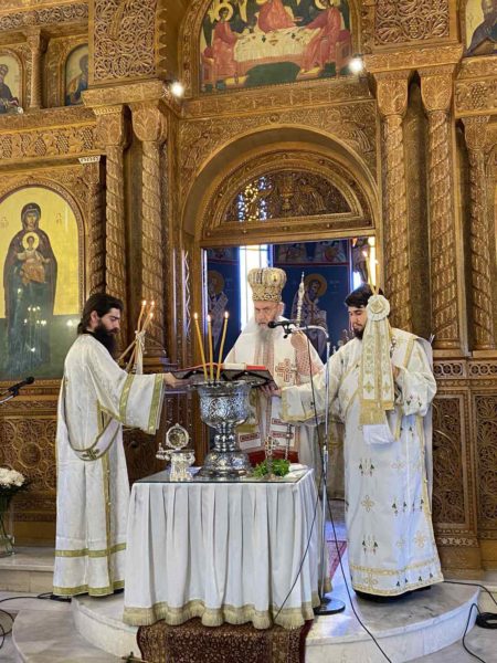 Είπε, μάλιστα, ότι οι δύο άγιες Τράπεζες που βρίσκονται στις δύο κόγχες, βόρεια και νότια, του μεγαλοπρεπούς Ιερού Ναού της Αγίας Παρασκευής, ήταν ανεγκαινίαστες, ωσάν να περίμεναν την καθιέρωσή τους. «Και το αυτό πραγματοποιείται εφέτος, με τον εγκαινιασμό της πρώτης εις τιμήν του αγίου Καλλινίκου και με τον εγκαινιασμό της δεύτερης τον επόμενο μήνα προς τιμήν του άλλου νεοφανούς αγίου Σωφρονίου του αγιορείτου».
