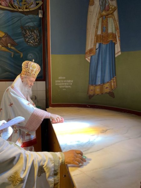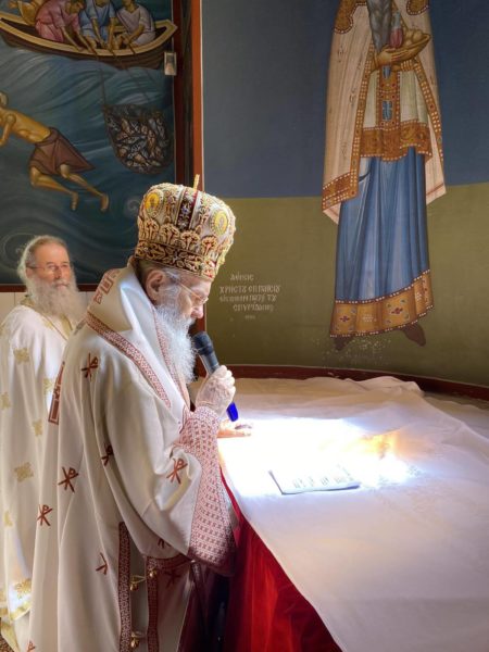 Ο Σεβασμιώτατος κ. Ιερόθεος εξέφρασε τη μεγάλη του συγκίνηση για το σπάνιο γεγονός και ευλογία να εγκαινιάζει ως Αρχιερεύς αγία Τράπεζα προς τιμήν του αγίου Γέροντός του.