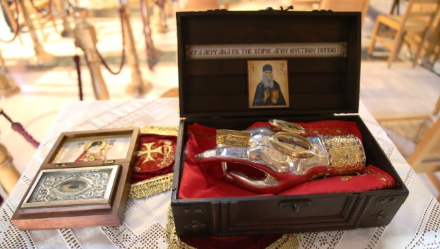 Τα λείψανα που ετέθησαν σε προσκύνηση προσφέρθηκαν του μεν αγίου Λουκά από τον Σεβασμιώτατο, στον οποίο τα είχε δωρίσει ο Μητροπολίτης Συμφερουπόλεως κατά την συμμετοχή του στην Συμφερούπολη σε ένα επιστημονικό ιατρικό Συνέδριο, του δε αγίου Ιουστίνου από τον Ιεροκήρυκα Αρχιμ. π. Ειρηναίο Κουτσογιάννη, ο οποίος παρευρέθηκε στην ακολουθία της ανακομιδής των λειψάνων του και του δόθηκε ως ευλογία ένα τεμάχιο ιερού λειψάνου του.