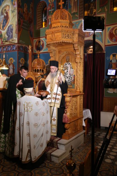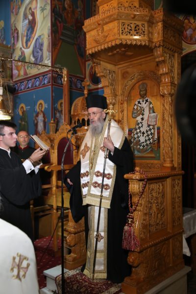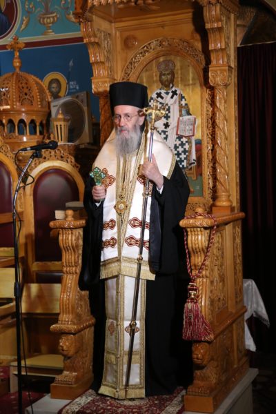 Εν συνεχεία ο Σεβασμιώτατος τέλεσε Δέηση, Αρτοκλασία και ευλόγησε τα εορταστικά κόλλυβα του Αγίου.