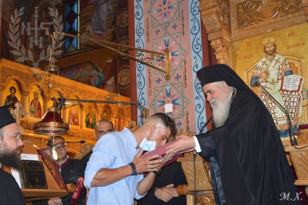 Στο τέλος του Εσπερινού, ο Σεβασμιώτατος επέδωσε στον αστυνομικό της ομάδας Δίας, κ. Χρήστο Πετμεζά, μια Εικόνα της Παναγίας της Χορταΐτισσας, για να τον τιμήσει και να προβάλει συγχρόνως τη θυσιαστική του προσπάθεια να σώσει, κάνοντας επί μισή ώρα καρδιοαναπνευστική αναζωογόνηση, τη ζωή ενός πολίτη, του κυρίου Γιάννη Βελιβασάκη, ο οποίος είχε καταρρεύσει από ανακοπή καρδιάς το πρωί της Τετάρτης 11 Μαρτίου.