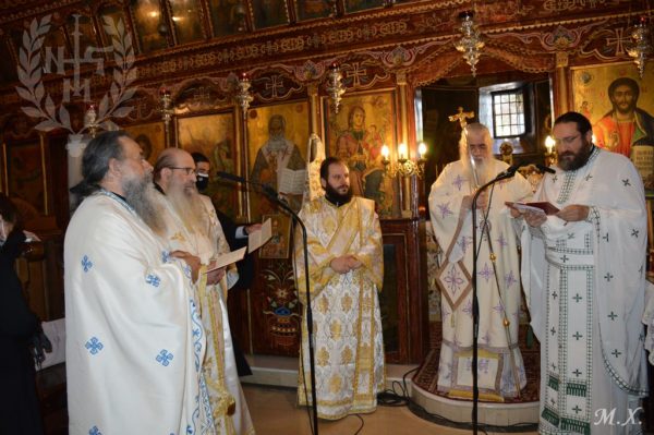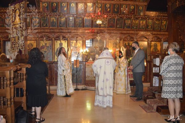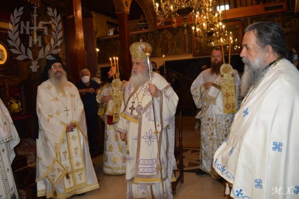 Το Σεβασμιώτατο πλαισίωσαν ο Πανοσιολογιώτατος Αρχιμανδρίτης π. Τύχων, Καθηγούμενος της Ιεράς Μονής Σταυρονικήτα Αγίου Όρους, ο π. Μιχαήλ από την Ιερά Μητρόπολη Γόρτυνος και Αρκαδίας στην Κρήτη και ο π. Ιγνάτιος στενός φίλος του εκλιπόντος πατρός.