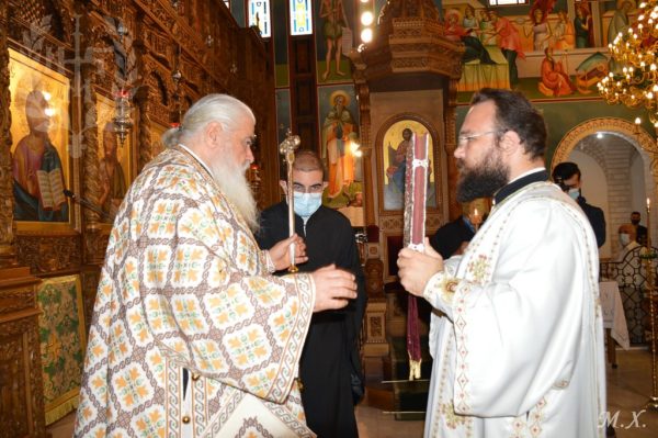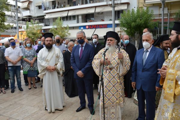 Μετά το πέρας της Θείας Λειτουργίας, ο Σεβασμιώτατος τέλεσε τρισάγιο στη μνήμη των αδίκως αναιρεθέντων και αδίκως εκδιωχθέντων, κατά τη Μικρασιατική καταστροφή, από τις πατρογονικές εστίες αιώνων. Ακολούθησε κατάθεση στεφανιών στο μνημείο που δεσπόζει στον αύλειο χώρο του Ιερού Ναού.