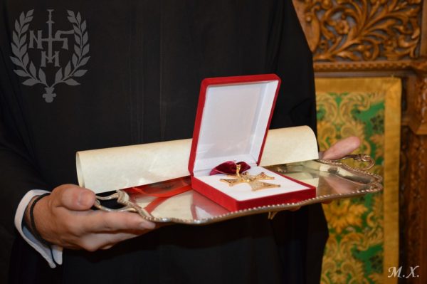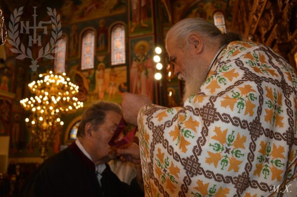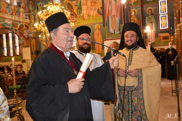 Ιδιαιτέρως συγκινητική υπήρξε η στιγμή κατά την οποία ο Σεβασμιώτατος απένειμε το χρυσό σταυρό στον, επί 64 έτη, διατελέσαντα ιεροψάλτη του Ναού, κ.Φώτιο Τζανίδη.