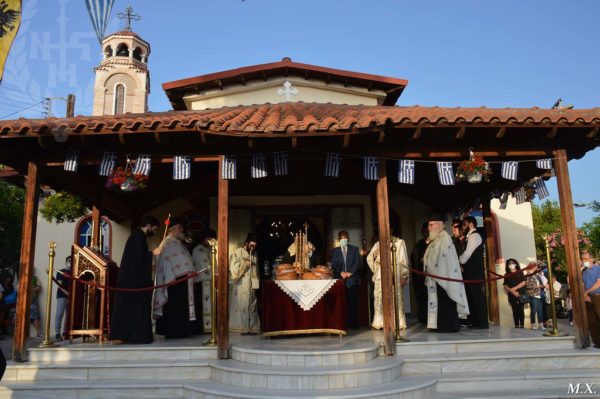 Το Σεβασμιώτατο πλαισίωσαν ο πρωτοπρεσβύτερος π. Διονύσιος Σκαρκαλάς, ο Πανοσιολογιώτατος αρχιμανδρίτης π. Συμεών Χωματάς , ο αρχιδιάκονος π. Γεώργιος Πολυχρονιάδης και ο διάκονος π. Χρήστος Κάνουλας. Συμπροσευχόμενος ήταν ο προϊστάμενος του Ι. Ναού π. Γεώργιος Μπέτας.