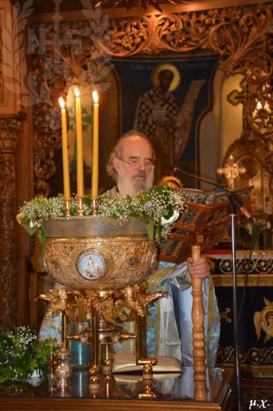 Μετά το πέρας της θείας λειτουργίας, ο πρωτοπρεσβύτερος π. Βασίλειος Καλλιακμάνης με τη χαρακτηριστική του ιλαρότητα και μειλιχιότητα αναφέρθηκε στο Φως που απορρέει από τη Δεσποτική εορτή των Θεοφανείων και στον πλούσιο φωτισμό που επιχέεται στους καλοπροαίρετους και αγωνιστές.