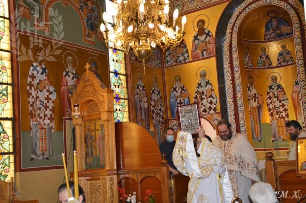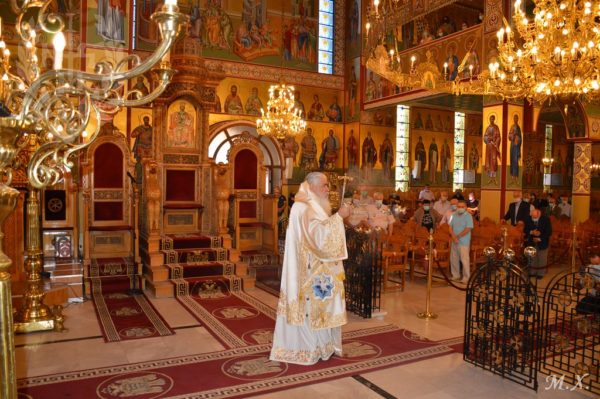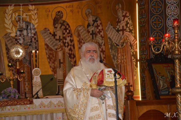Ο Σεβασμιώτατος, στο κήρυγμά του, αξιοποίησε μια σκηνή από την Παλαιά Διαθήκη, στην οποία αποτυπώνεται η σωτηρία των Ιουδαίων, από μια πηγή ύδατος, για να τη συνδέσει με τη σημερινή Ευαγγελική Περικοπή. Ο Σεβασμιώτατος μεταξύ των άλλων επεσήμανε τα εξής: «Ο διψών ελθέτω πρός με και πινέτω»: ο Χριστός καλεί όσους διψούν να Τον πλησιάσουν, για να ξεδιψάσουν, να αναζωογονηθούν. Ο Χριστός μάς συναντά στην έρημο της ζωής μας και γίνεται ο ίδιος πηγή ζωής και σωτηρίας. Οι Άγιοί μας στους οποίους αναπαύεται το Πνεύμα το Άγιο συνιστούν ποταμούς ύδατος ζώντος.