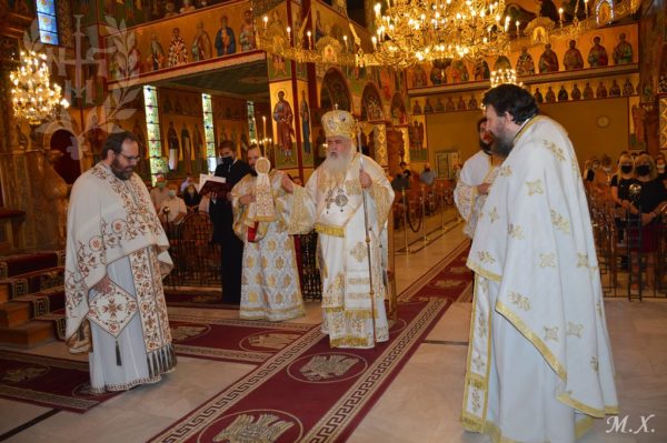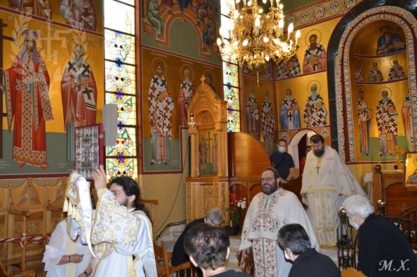 Τη Γενέθλιο Ημέρα της Εκκλησίας, την Πεντηκοστή, Κυριακή 20 Ιουνίου 2021 ο Σεβασμιώτατος Μητροπολίτης Νεαπόλεως και Σταυρουπόλεως κ. Βαρνάβας πλαισιωμένος από τον Πανοσιολογιώτατο Αρχιμανδρίτη π. Ιωάννη Περιστερίδη, τον Πρωτοπρεσβύτερο π. Γεώργιο Μίλκα, προϊστάμενο του Ιερού Ναού, τον αρχιδιάκονο π. Γεώργιο Πολυχρονίδη και το διάκονο π. Γεώργιο Αντωνιάδη, ιερούργησε στον Ιερό Ναό Ευαγγελισμού της Θεοτόκου στον Εύοσμο.