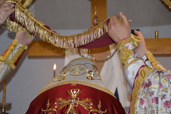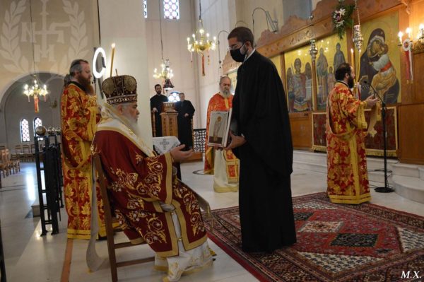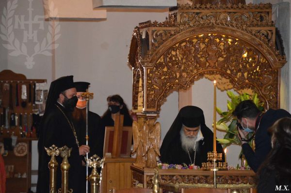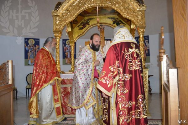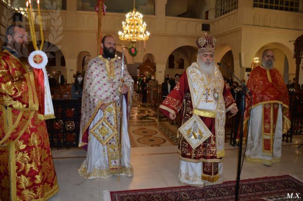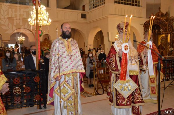 Το Σεβασμιώτατο πλαισίωναν οι πατέρες Ευγένιος Καρατζάς, προϊστάμενος του Ιερού Ναού, ο π.Δημήτριος Ζάγκας, ο αρχιδιάκονος π.Γεώργιος Πολυχρονιάδης και ο διάκονος π.Χρήστος Κανούλας.