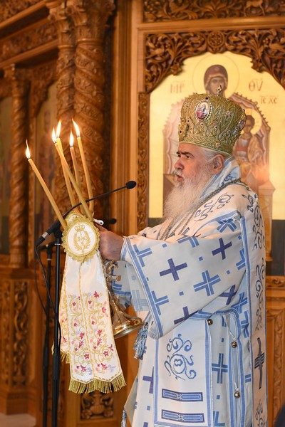 Αμέσως μετά τελέσθηκε ο Πανηγυρικός Αρχιερατικός Εσπερινός, στον οποίο χοροστάτησε ο Σεβασμιώτατος. Στο εμπνευσμένο κήρυγμά του αναφέρθηκε εκτενώς στο πρόσωπο της Παναγίας Μητέρας μας και συγκεκριμένα στο θαύμα της εικόνος του «Άξιον Εστί».