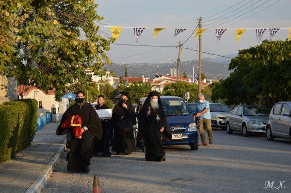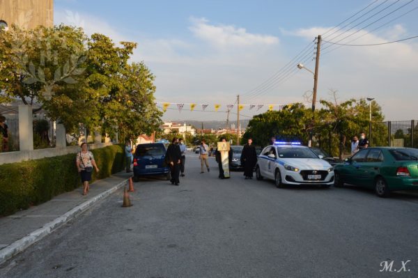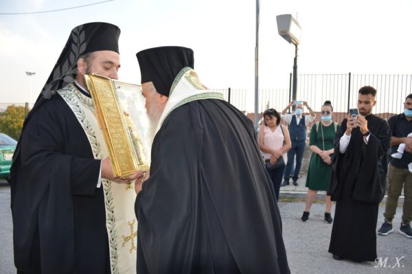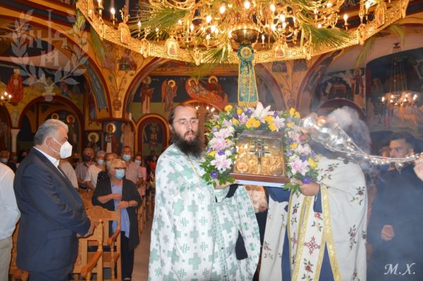 Ο Σεβασμιώτατος κ. Βαρνάβας νωρίτερα υποδέχθηκε τεμάχιο του Τιμίου Σταυρού, το οποίο έθεσε προς προσκύνηση του πιστού λαού.