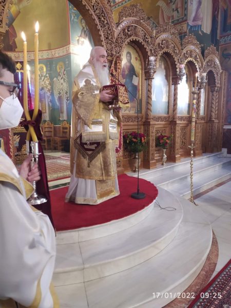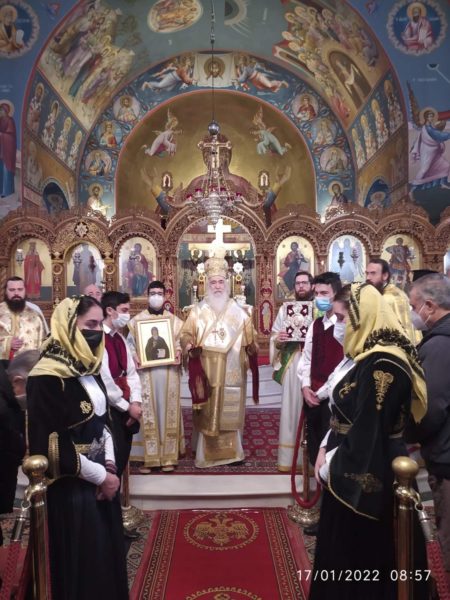 Χθες το πρωί (16/01/2022) έγινε Προεόρτια Πανηγυρική Θεία Λειτουργία, ιερουργούντος του Θεοφιλεστάτου Επισκόπου Ευρίπου κ. Χρυσοστόμου, ενώ το απόγευμα τελέστηκε ο πανηγυρικός Εσπερινός, χοροστατούντος του Σεβασμιωτάτου Μητροπολίτου Νικαίας κ. Αλεξίου.