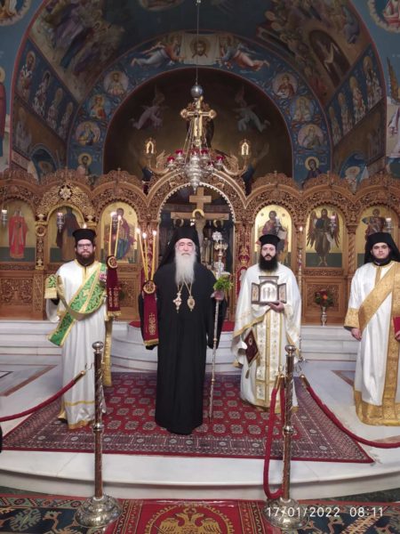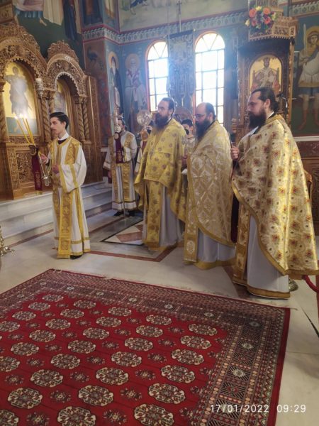 Χθες το πρωί (16/01/2022) έγινε Προεόρτια Πανηγυρική Θεία Λειτουργία, ιερουργούντος του Θεοφιλεστάτου Επισκόπου Ευρίπου κ. Χρυσοστόμου, ενώ το απόγευμα τελέστηκε ο πανηγυρικός Εσπερινός, χοροστατούντος του Σεβασμιωτάτου Μητροπολίτου Νικαίας κ. Αλεξίου.