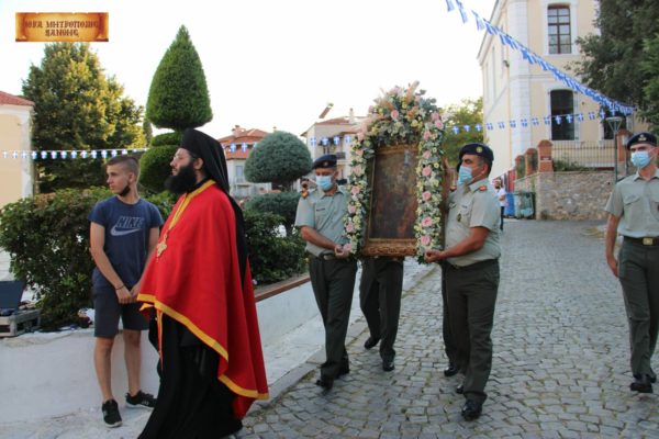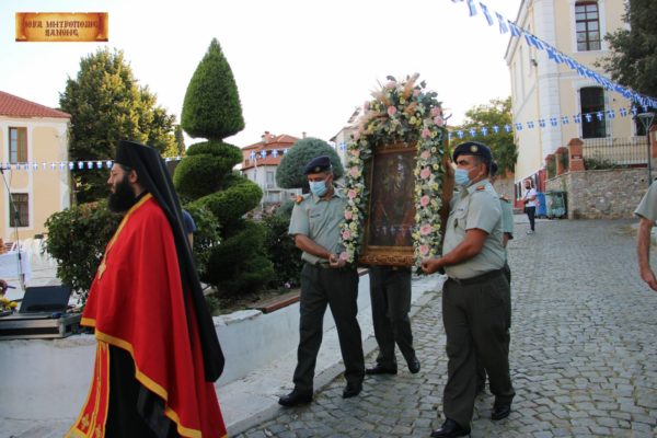 Υπενθυμίζεται πως στον Μητροπολιτικό Ναό είχε κομισθεί προς προσκύνηση, όπως κάθε χρόνο, και η ιερή εικόνα της Παναγίας της Καλαμούς.