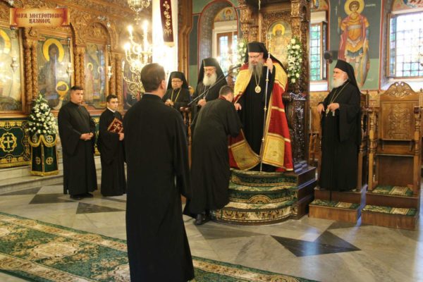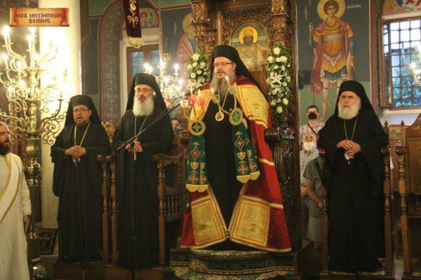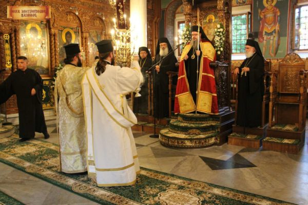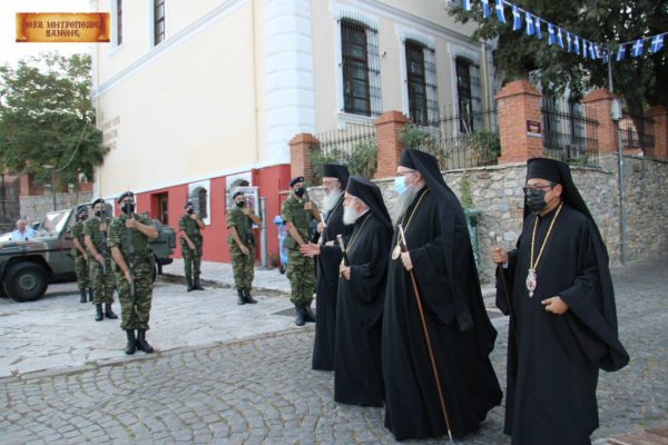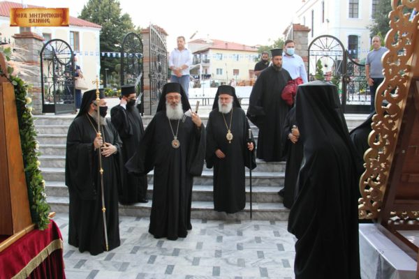 Στον πανηγυρικό εσπερινό χοροστάτησε ο Σεβασμιώτατος Mητροπολίτης Λαρίσης και Τυρνάβου κ. Ιερώνυμος, συγχοροστατούντων του Σεβ. Μητροπολίτη Αλεξανδρουπόλεως κ. Ανθίμου, του Θεοφιλ. Επισκόπου Άσσου κ. Τιμοθέου και του οικείου Μητροπολίτη, βεβαίως, κ. Παντελεήμονος.