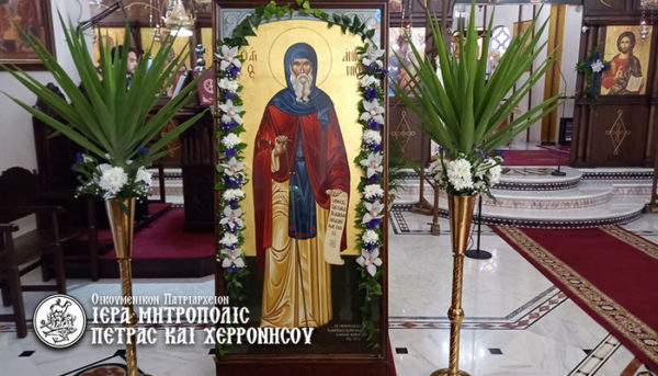 Στο κήρυγμά του προς τους ευσεβείς χριστιανούς ο Σεβασμιώτατος ανεφέρθη στον οσιακό βίο και την χαρισματική προσωπικότητα του Αγίου Αντωνίου: «Γεννήθηκε στην Αίγυπτο γύρω στο 251 μ.Χ., εποχή κατά την οποία ο χριστιανικός κόσμος συγκλονίζεται από τον διωγμό του Δεκίου. Οι γονείς του, ευσεβείς και πλούσιοι χριστιανοί, τον ανέθρεψαν με πίστη και φόβο Θεού.