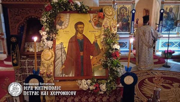 Με κατάνυξη και κατά την δέουσα εκκλησιαστική τάξη τελέσθηκε η Ιερά Αγρυπνία επί τη μνήμη του Αγίου νεομάρτυρος Νικηφόρου του εκ Κριτσάς Μεραμβέλλου. Οι Ιερές Ακολουθίες του Εσπερινού, του Όρθρου και της Θείας Λειτουργίας τελέσθηκαν στον Ιερό Ναό Παναγίας Οδηγήτριας, χοροστατούντος του Μητροπολίτη Πέτρας και Χερρονήσουκ. Γερασίμου.