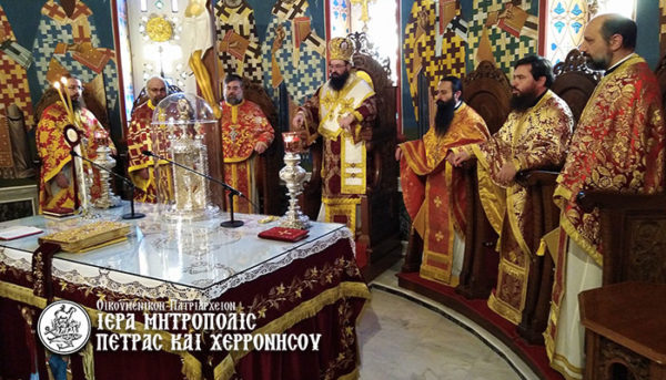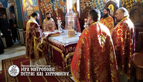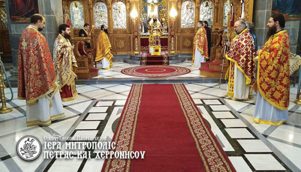 Το πρωί του Σαββάτου 10 Απριλίου, μνήμη του Ιερομάρτυρος Γρηγορίου Ε΄, Πατριάρχου Κωνσταντινουπόλεως, τελέσθηκε στον Ιερό Μητροπολιτικό Ναό Μεγάλης Παναγίας Νεαπόλεως Θεία Λειτουργία, ιερουργούντος του Σεβασμ. Μητροπολίτου κ. Γερασίμου.