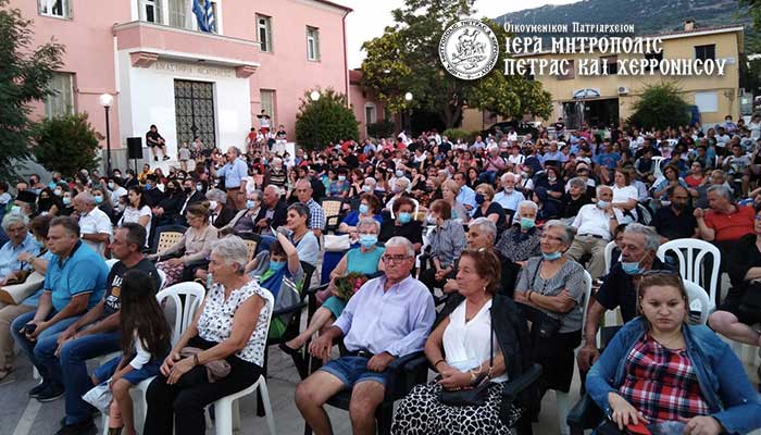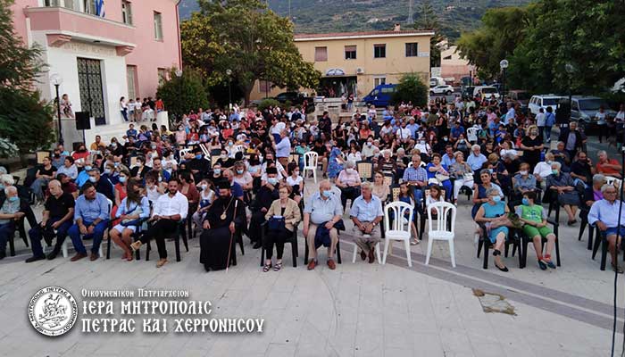 Στην κατάμεστη Πλατεία Δικαστηρίων Νεαπόλεως Κρήτης πραγματοποιήθηκε το απόγευμα της Κυριακής 11 Ιουλίου 2021, για ακόμη μία φορά, η θεατρική παράσταση του έργου του Διαλλινομιχάλη «Ελένη η Καινουριοχωρίτισσα», παρουσία του Σεβασμ. Μητροπολίτου Πέτρας και Χερρονήσου κ. Γερασίμου.