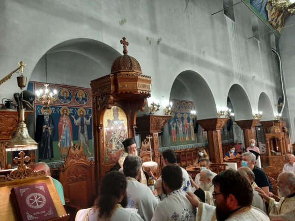 Μετά το πέρας της Θείας Λειτουργίας, ο Σεβασμιώτατος δέχθηκε ευχές από τις αρχές του τόπου, κληρικούς και πιστούς.