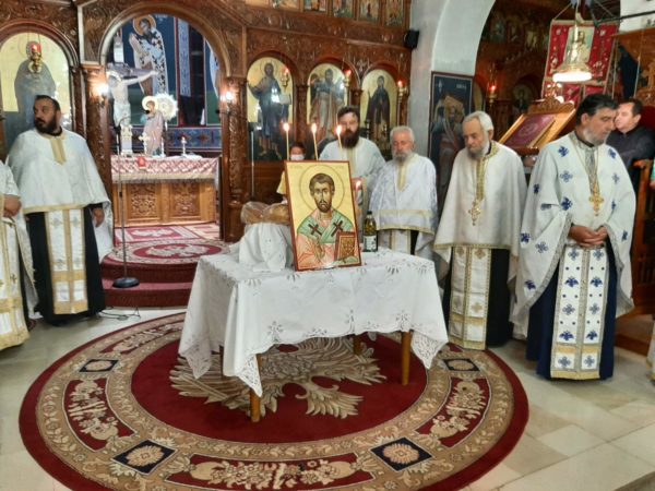 Ανήμερα της εορτής τελέσθηκε Όρθρος και Αρχιερατική Θεία Λειτουργία μετ’ αρτοκλασίας ιερουργούντος του εορτάζοντος Σεβασμιωτάτου, ο οποίος συνοδευόταν από τον Γενικό Αρχιερατικό Επίτροπο πρωτ/ρο π. Βελισσάριο Σάντα, τον Ηγούμενο της Ιεράς Μονής Γηρομερίου Αρχιμανδρίτη π. Μεθόδιο Ντελή με την συνοδεία του, τον διάκονο και ιερείς της Ιεράς Μητρόπολης.