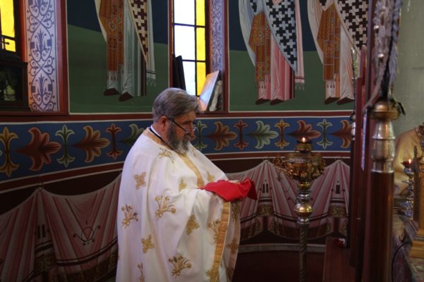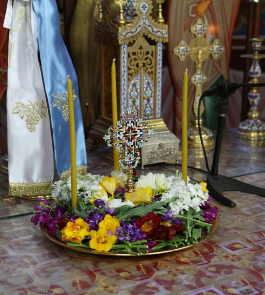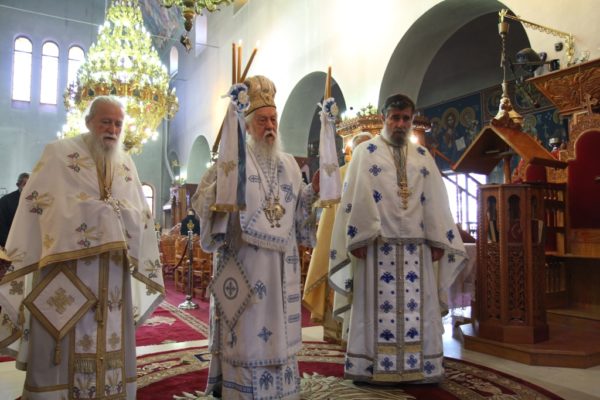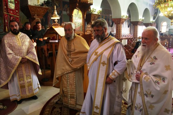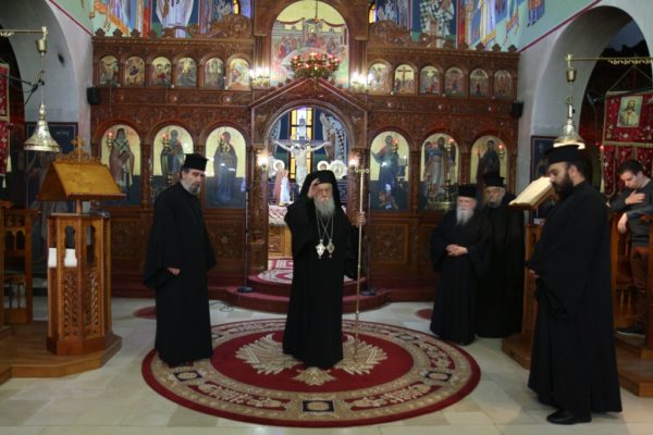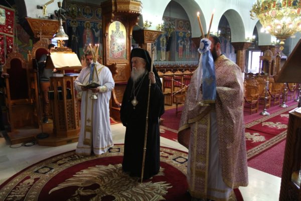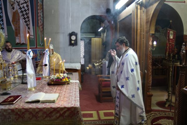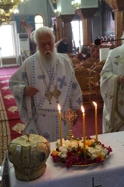 Μετά τον Όρθρο έγινε η περιφορά του τιμίου Σταυρού από τους ιερείς εντός του Ιερού Ναού προς προσκύνηση και προεξάρχοντος του Σεβασμιωτάτου έγινε η τελετή της προσκυνήσεως του τιμίου Σταυρού όπου και διεμοίρασε άνθη εις τους πιστούς.