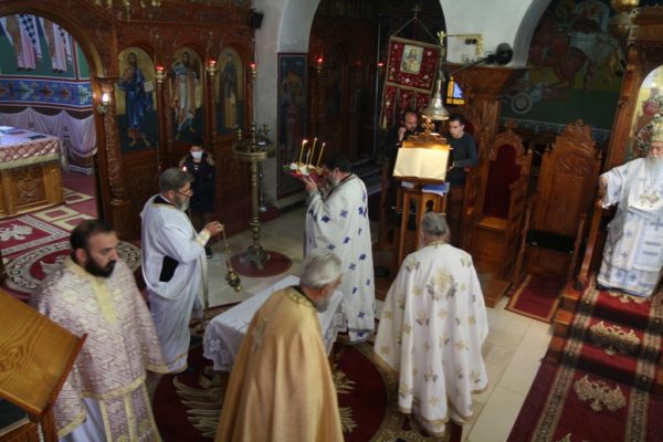 Ο Σεβασμιώτατος από του ιερού βήματος ευχήθηκε στους πιστούς χρόνια πολλά και καλό υπόλοιπο της Αγίας και Μεγάλης Τεσσαρακοστής και στον νεοχειροτονηθέντα Ιερέα να είναι άξιος στην ιεροσύνη του και καλή διακονία στο Άγιο Θυσιαστήριο του Χριστού.
