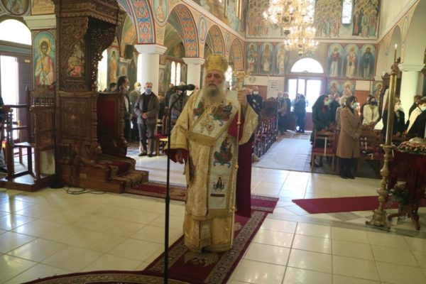 Εν συνεχεία μετέβη στον αύλειο χώρο του Ιερού Ναού όπου τέλεσε Τρισάγιο επί του μνήματος του μακαριστού Αρχιμανδρίτου π. Κωνσταντίνου Θεολογίτη.