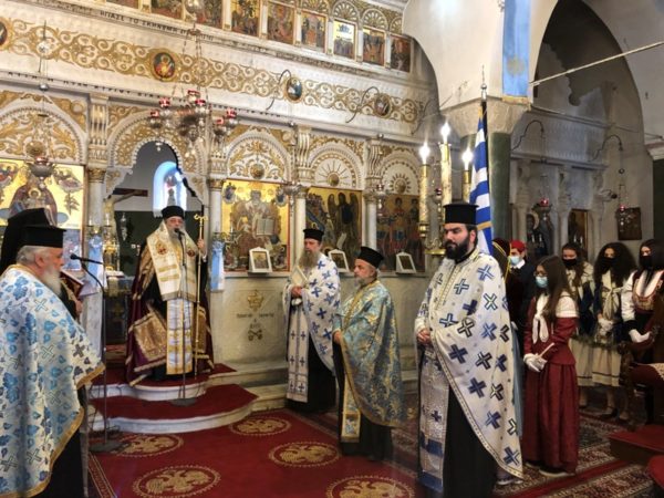 Μετά το πέρας της Θείας Λειτουργίας, τελέσθηκε, παρουσία των τοπικών, στρατιωτικών, δικαστικών, εκπαιδευτικών και λοιπών αρχών και φορέων της νήσου, η υπό της Ιεράς Συνόδου αποσταλείσα ειδική Δοξολογία επί τη διακοσιοστή επετείω της εξεγέρσεως των Ελλήνων διά την ελευθερίαν της πατρίδος μας.