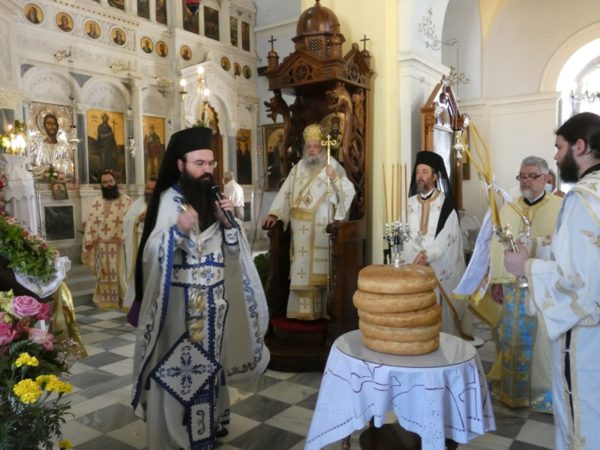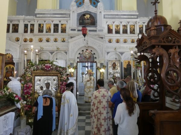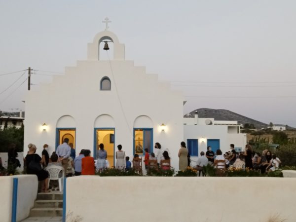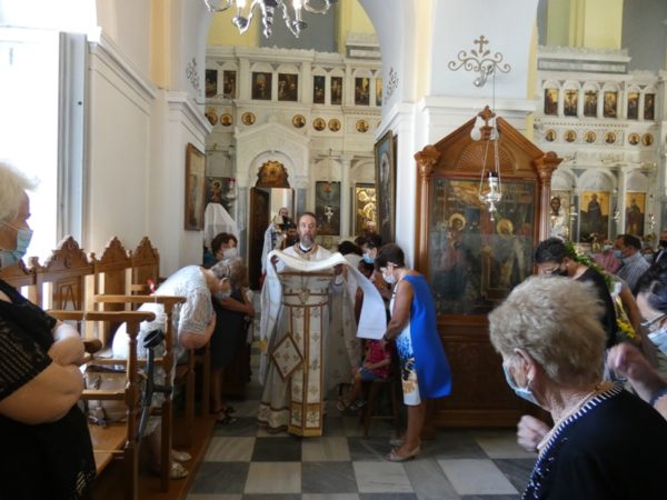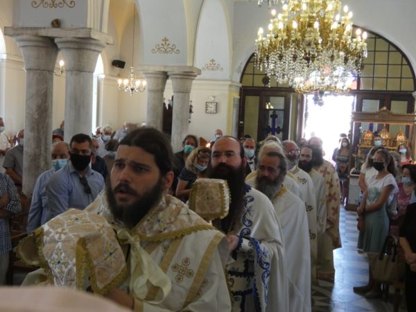 Στον Πανηγυρίζοντα Ιερό Ενοριακό Ναό Κοιμήσεως Θεοτόκου Ναούσης Πάρου χοροστάτησε στον Όρθρο, ευλόγησε τους προσφερθέντες Άρτους και προέστη της Θείας Λειτουργίας ο Σεβασμιώτατος Μητροπολίτης Παροναξίας κ. Καλλίνικος τη Δευτέρα 23-8-2021.