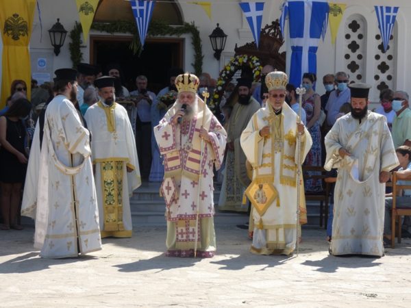 Ανήμερα της εορτής, Τετάρτη 18-8-2021, τελέσθηκε Αρχιερατικό συλλείτουργο, προεξάρχοντος του Σεβασμιωτάτου Μητροπολίτου κ. Καλλινίκου και συλλειτουργούντος του Θεοφιλεστάτου Επισκόπου Κεράμων κ. Βαρθολομαίου.