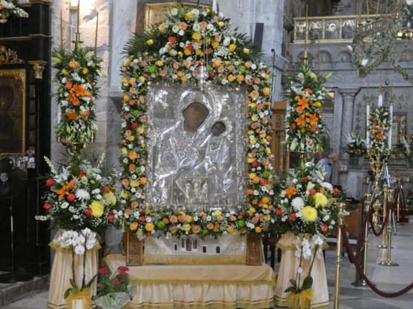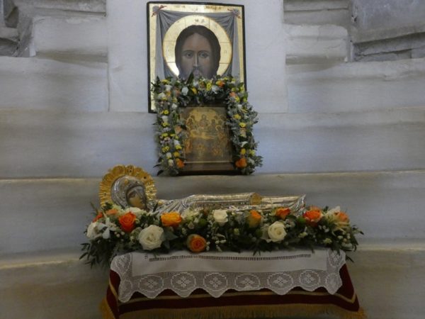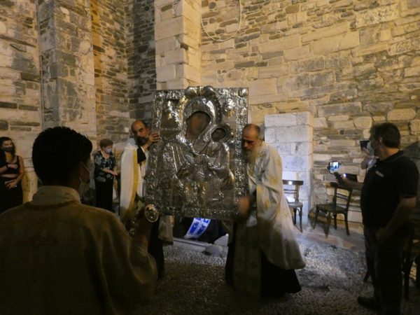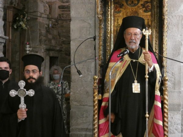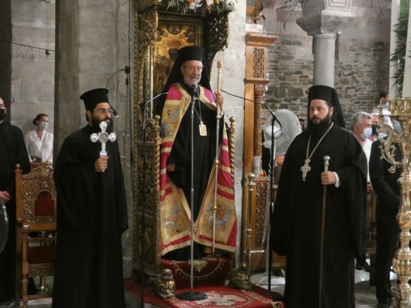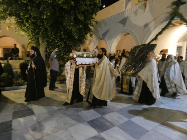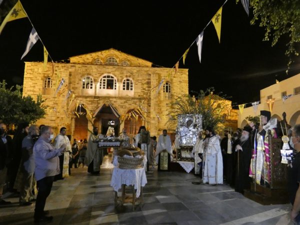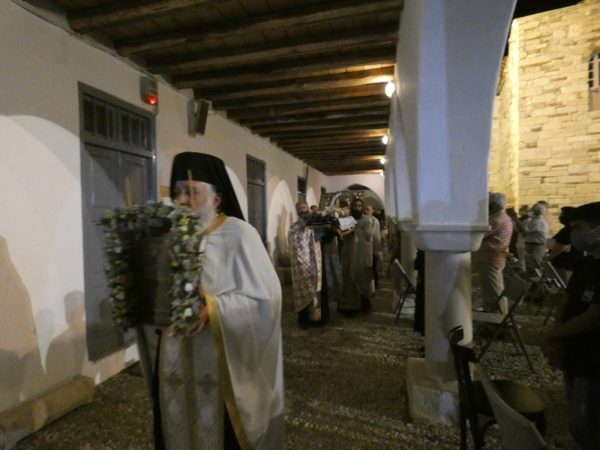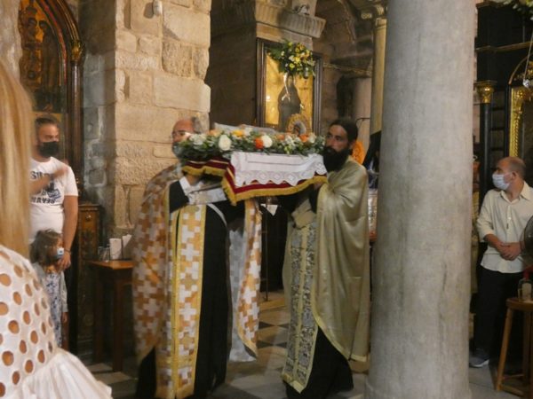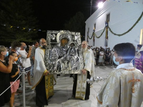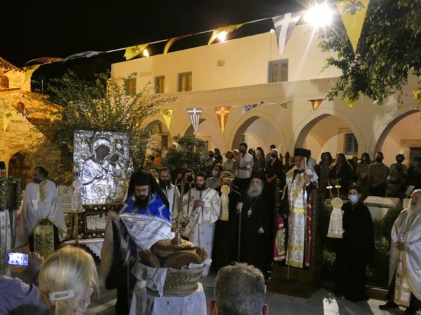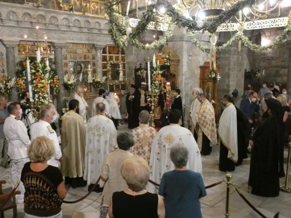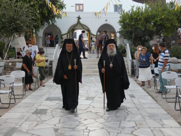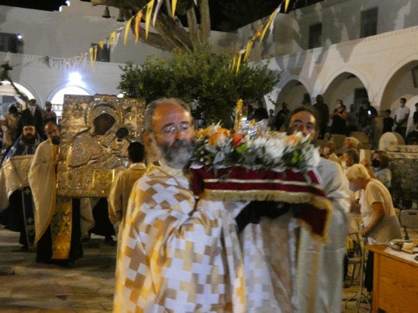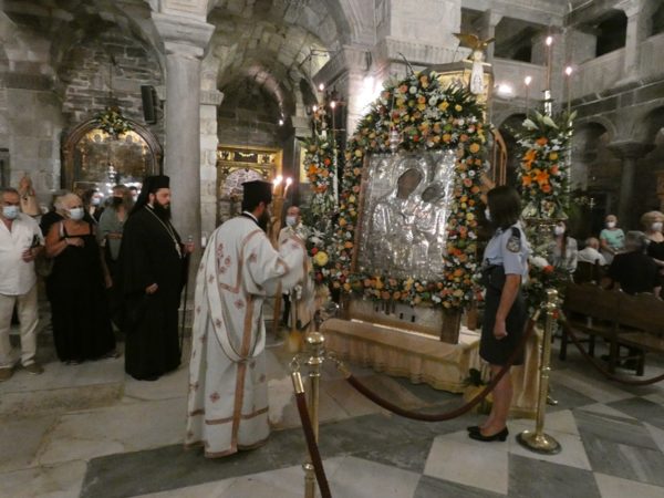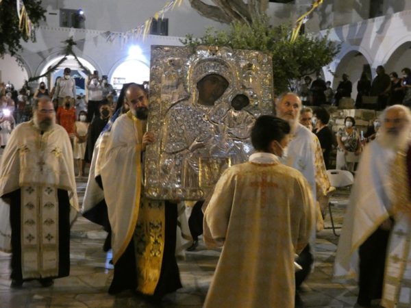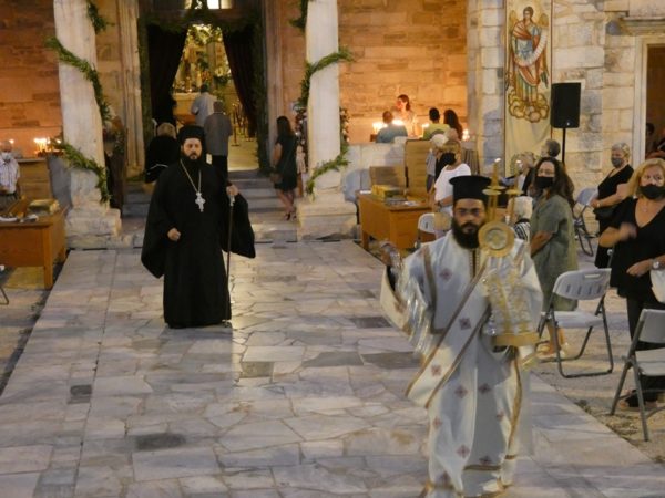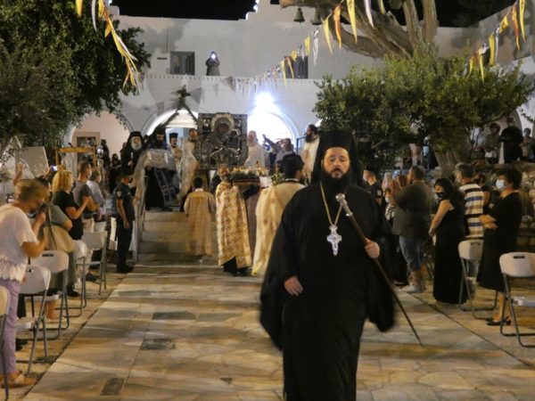 Με κατάνυξη και τηρουμένων όλων των απαραιτήτων μέτρων υγειονομικής προστασίας τελέσθηκε το απόγευμα του Σαββάτου 14 Αυγούστου 2021 ο Πανηγυρικός Εσπερινός της Κοιμήσεως της Υπεραγίας Θεοτόκου στο Πανηγυρίζον Ιερό Προσκύνημα Παναγίας Εκατονταπυλιανής Πάρου.