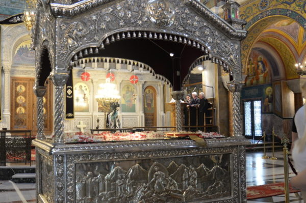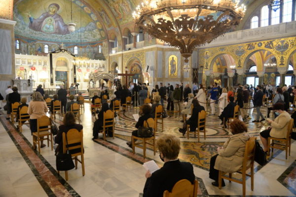 Το προσκύνημα ήτο συνεχές, ενώ με τις τηρούμενες αποστάσεις, οι πιστοί είχαν γεμίσει τον μεγάλο αύλειο χώρο του Ναού και πέραν αυτού.