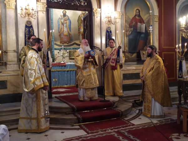 Ο Σεβασμιώτατος Μητροπολίτης Πατρών κ.κ. Χρυσόστομος στο κήρυγμά του, ανεφέρθη στο ευαγγελικό ανάγνωσμα, ομιλήσας περί ευγνωμοσύνης καί αχαριστίας προς τον Θεό καί τον συνάνθρωπο καί εν συνεχεία ανεφέρθη στο βίο καί στο φρικτό μαρτύριο τού Οσιομάρτυρος Παύλου τού Πατρέως καί των συν αυτώ Αγίων Αββάδων. Επίσης ευχήθηκε τα δέοντα στον Σεβασμιώτατο Μητροπολίτη Κινσάσας κ. Θεοδόσιο, γιά μακροχρόνια, θεοτίμητη καί πνευματικά καρποφόρο ποιμαντορία στην νέα του πνευματική έπαλξη, στον οποίο προσέφερε ως ευλογία καί ένδειξη αγάπης ιερό αρχιερατικό εγκόλπιο.