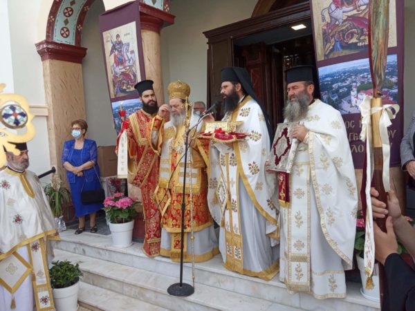 Ο Θεοφιλέστατος Επίσκοπος Κερνίτσης κ. Χρύσανθος τέλεσε την Θεία Λειτουργία και μίλησε για τους Αγίους Μάρτυρες, υιούς της Αναστάσεως, λαμβάνοντας αφορμή από την μαρτυρική βιοτή και πολιτεία του Αγίου Γεωργίου, στον πανηγυρίζοντα Ιερό Ναό του Αγίου ενδόξου Μεγαλομάρτυρος Γεωργίου Μιντιλογλίου Πατρών. Επαίνεσε δε και τον νέο προϊστάμενο της Ενορίας Πανοσιολογιώτατον Αρχιμ. π. Ανδρέα Θεοδωράτο και τους συνεργάτες του, για την εργώδη προσπάθεια προς πνευματική καλλιέργεια της μεγάλης αυτής ενορίας.