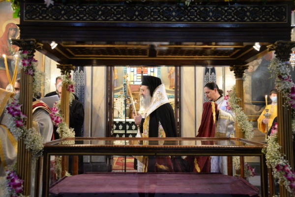 Κατά την Ακολουθία της Αποκαθηλώσεως στον Ιερό Ναό της Ευαγγελιστρίας Πατρών, ο Σεβασμιώτατος Μητροπολίτης Πατρών κ. Χρυσόστομος, μέσα από μια αναφορά στο Πάθος του Κυρίου, ευχαρίστησε τον Θεό λέγοντας « Δόξα σοι Κύριε δόξα σοι, που μας αξίωσες να προσκυνήσουμε και φέτος τα Άχραντα Πάθη Σου. Αξίωσέ μας να Σε δοξολογήσωμε και Αναστάντα εκ νεκρών».
