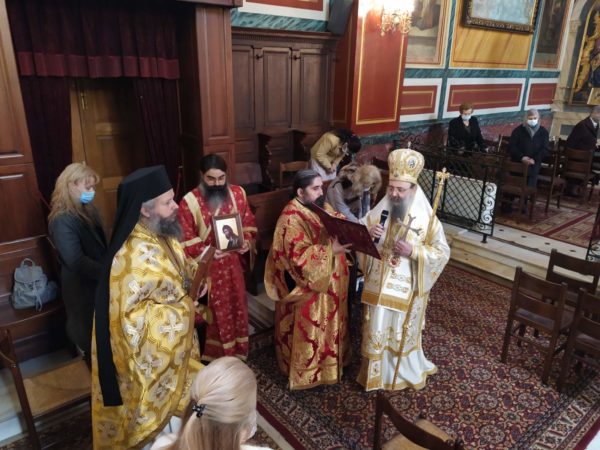 Μετά το πέρας της Θείας Λειτουργίας, πραγματοποιήθηκε η λιτάνευσις των ιερών Εικόνων εντός του Ιερού Ναού κατά την εκκλησιαστική τάξη.