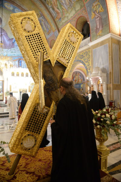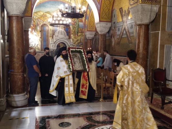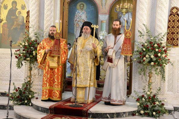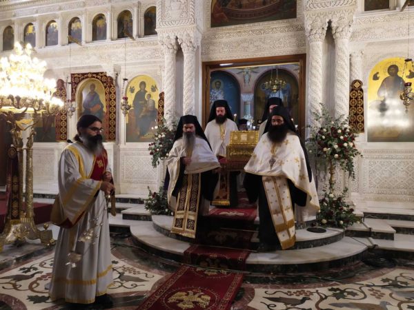Την παραμονή της εορτής στον μεγάλο Εσπερινό, χοροστάτησε και ομίλησε ο Θεοφιλέστατος Επίσκοπος Ευκαρπίας κ. Ιερόθεος, Ηγούμενος της Πατριαρχικής Μονής της Αγίας Ειρήνης Χρυσοβαλάντου στην Αστόρια της Αμερικής, ο οποίος ήταν κληρικός της Ιεράς Μητροπόλεως Πατρών. Στην Ιερά Ακολουθία συγχοροστάτησαν ο Σεβασμιώτατος Μητροπολίτης Πατρών κ. Χρυσόστομος και ο Θεοφιλέστατος Επίσκοπος Κερνίτσης κ. Χρύσανθος. Ανήμερα ετελέσθη η Θεία Λειτουργία, της οποίας προέστη ο Σεβασμιώτατος Μητροπολίτης Πατρών κ.κ. Χρυσόστομος συλλειτουργούντων των Θεοφιλεστάτων Επισκόπων Ευκαρπίας κ. Ιεροθέου και Κερνίτσης κ. Χρυσάνθου.
