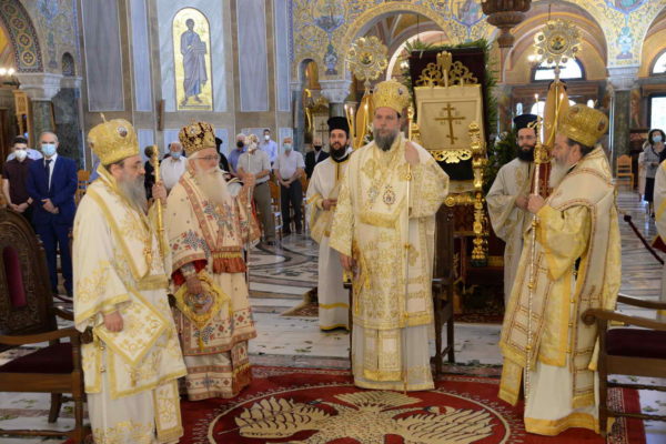 Πολυαρχιερατική Θεία Λειτουργία τελέσθηκε την Κυριακή 13.6.2021, στον μεγαλοπρεπή Ιερό Ναό του Αγίου Αποστόλου Ανδρέου Πατρών, όπου έχουν μεταφερθή από την Δημητσάνα τα Οστά του Παλαιών Πατρών Γερμανού.
