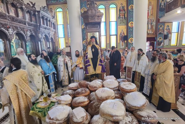 Ανήμερα, 17.7.2021, στον κατάμεστο από πιστούς Ιερό Ναό, τελέσθηκε η Θεία Λειτουργία υπό του Σεβασμιωτάτου Μητροπολίτου Πατρών κ. Χρυσοστόμου, ο οποίος στο κήρυγμά του μίλησε για την νίκη των Αγίων εναντίον των ορατών και αοράτων εχθρών και κυρίως εναντίον της φιληδονίας, της φιλοδοξίας και της φιλαργυρίας.
