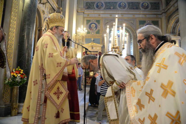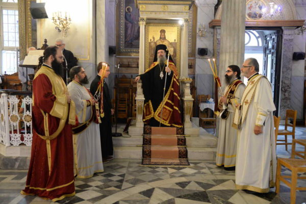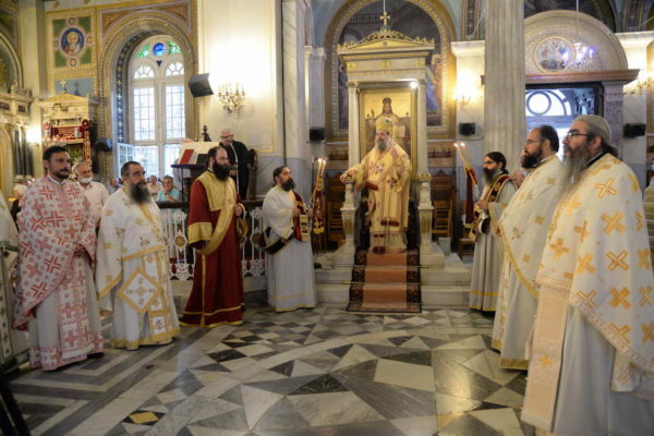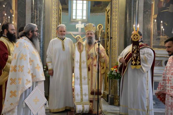 Ο Σεβασμιώτατος στην ομιλία του, αναφέρθηκε στη θυσία των Αγίων Εθνοϊερομαρτύρων Χρυσοστόμου Σμύρνης και λοιπών Αρχιερέων και Κληρικών που μαρτύρησαν κατά την Μικρασιατική καταστροφή, αφού η Εκκλησία τιμά την μνήμη τους την Κυριακή προ της Υψώσεως του Τιμίου και Ζωοποιού Σταυρού.