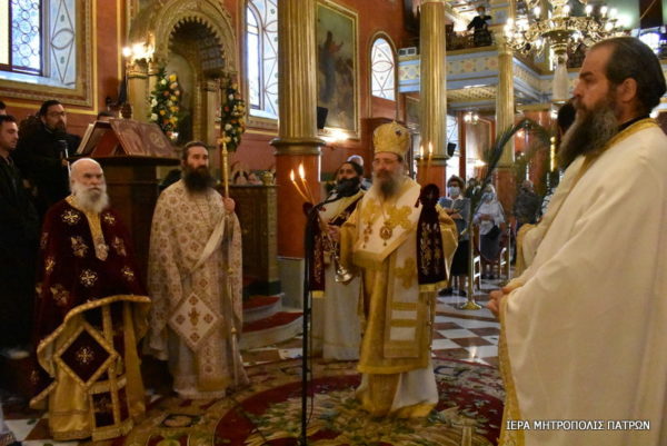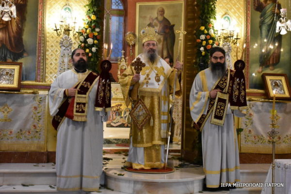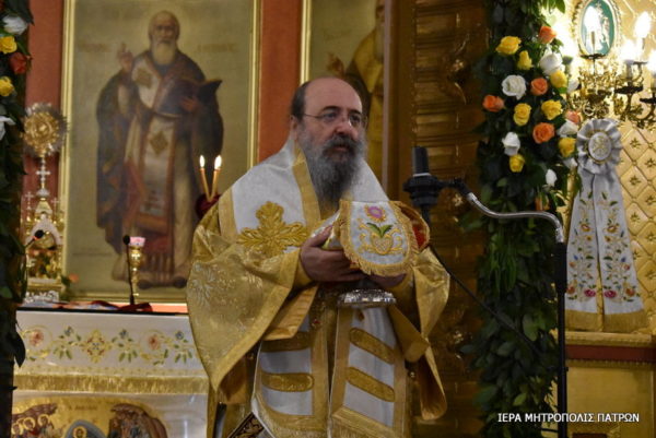 Ανήμερα χοροστάτησε στον Όρθρο και τέλεσε την Θεία Λειτουργία ο Σεβασμιώτατος Μητροπολίτης Πατρών κ. Χρυσόστομος, ο οποίος κήρυξε τον θείο λόγο με θέμα: «Η μεγάλη ευλογία από τον Θεό να έχωμε τα Λείψανα των Αγίων».