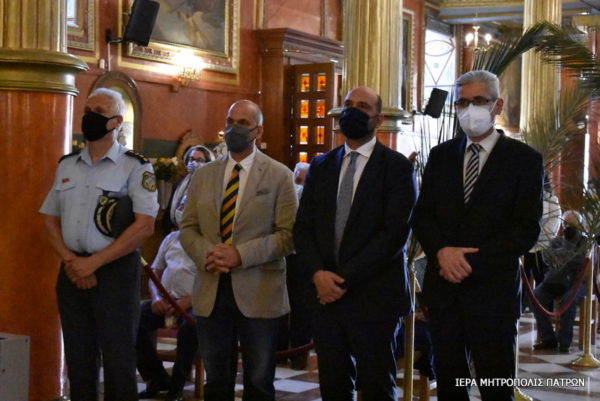Κατά την Θεία Λειτουργία εκκλησιάσθηκαν ο Αντιπεριφερειάρχης κ. Χαράλαμπος Μπονάνος, οι Βουλευτές Αχαΐας κ. Άγγελος Τσιγκρής και Ιάσων Φωτήλας, και Εκπρόσωποι των Αστυνομικών και άλλων τοπικών Αρχών.