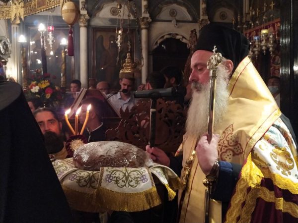 Στην Ιερά Αγρυπνία προέστη ο Θεοφιλέστατος Επίσκοπος Κερνίτσης κ. Χρύσανθος.