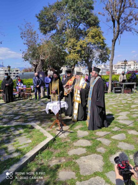 Προ του «Δι’ ευχών» ο Σεβασμιώτατος τόνισε ότι οι Έλληνες ελευθερώθηκαν γιατί ήταν Ορθόδοξοι Χριστιανοί, αγάπησαν βαθειά την Ελλάδα και είχαν ενότητα μεταξύ τους, προκειμένου να αγωνισθούν και να αποτινάξουν τον τουρκικό βαρύ και πολυχρόνιο ζυγό, όπερ και κατά τρόπον θαυμαστόν επέτυχαν.